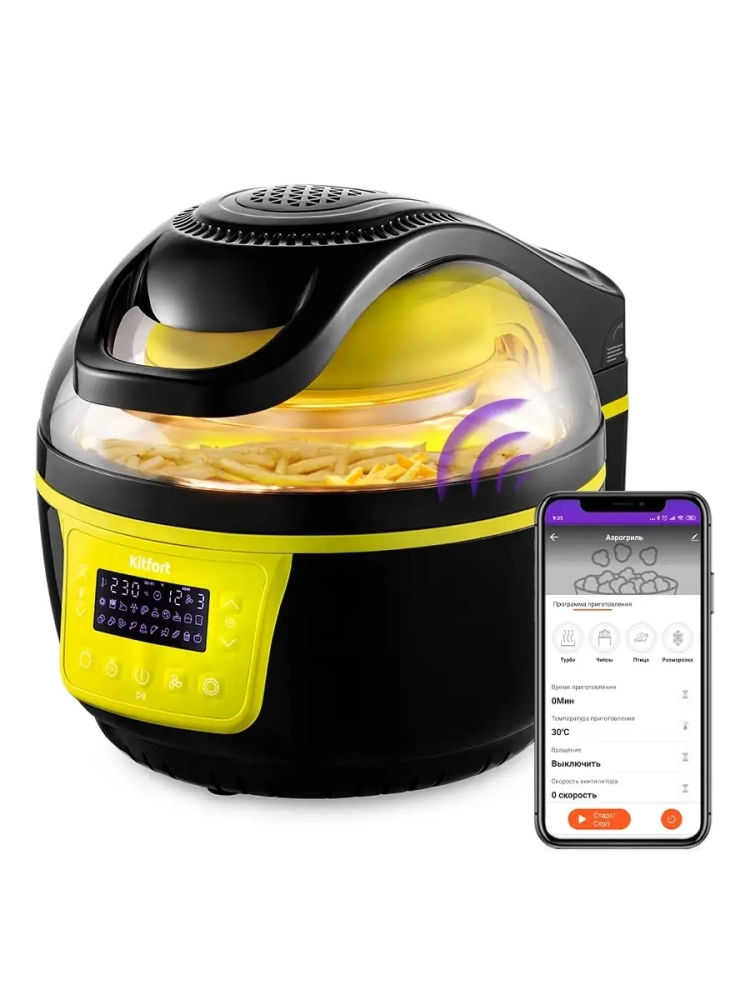КТ-2043 поддерживает функцию WI-FI. Вы сможете подключиться к устройству через приложение Smart Life и управлять аэрогрилем дистанционно, через телефон.