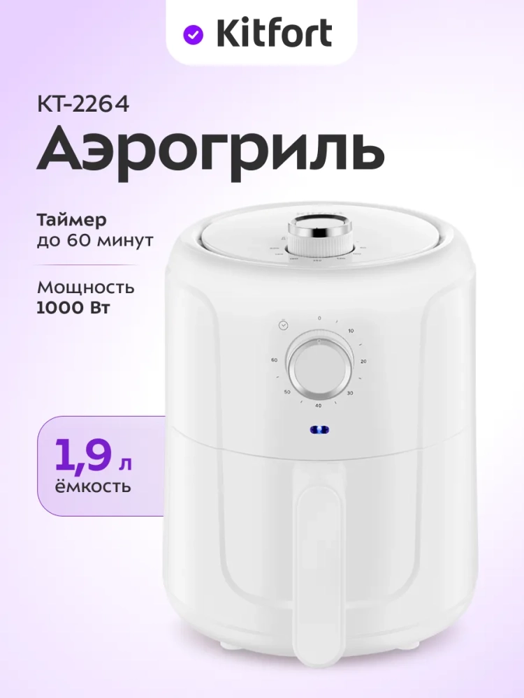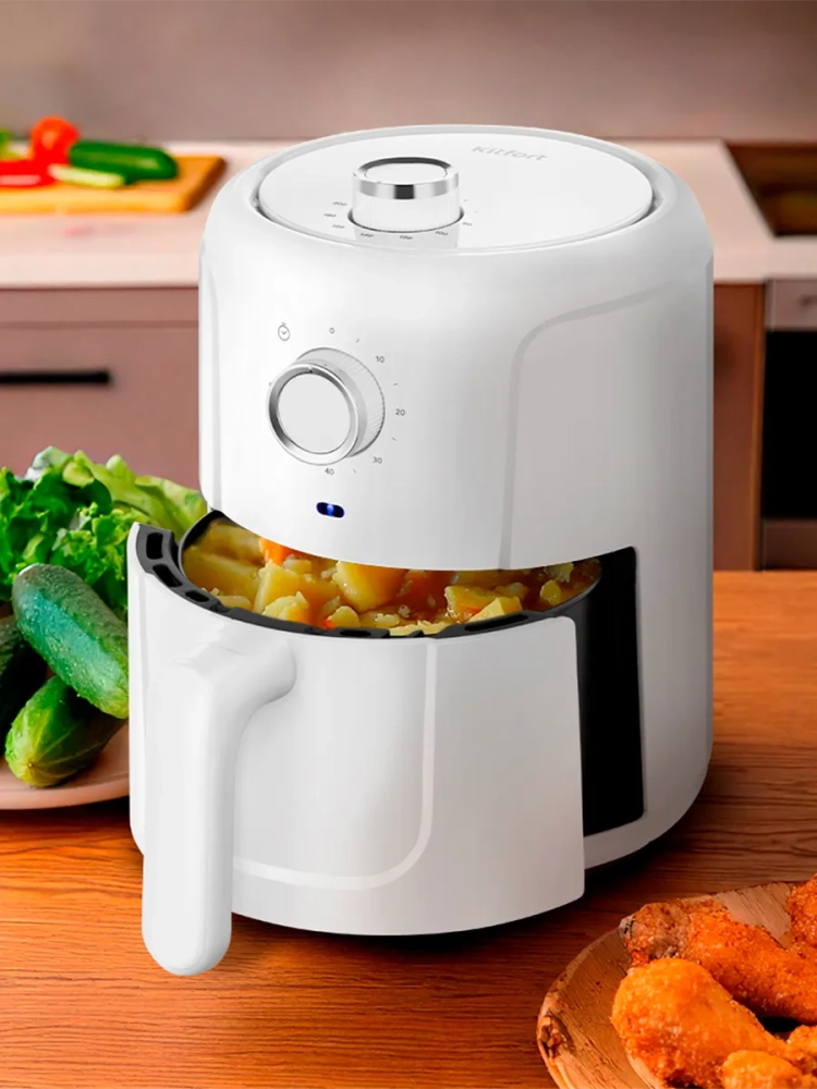 Современный аэрогриль Kitfort КТ-2264 позволяет готовить большинство продуктов без добавления масла, при этом они получаются сочными и с хрустящей корочкой.