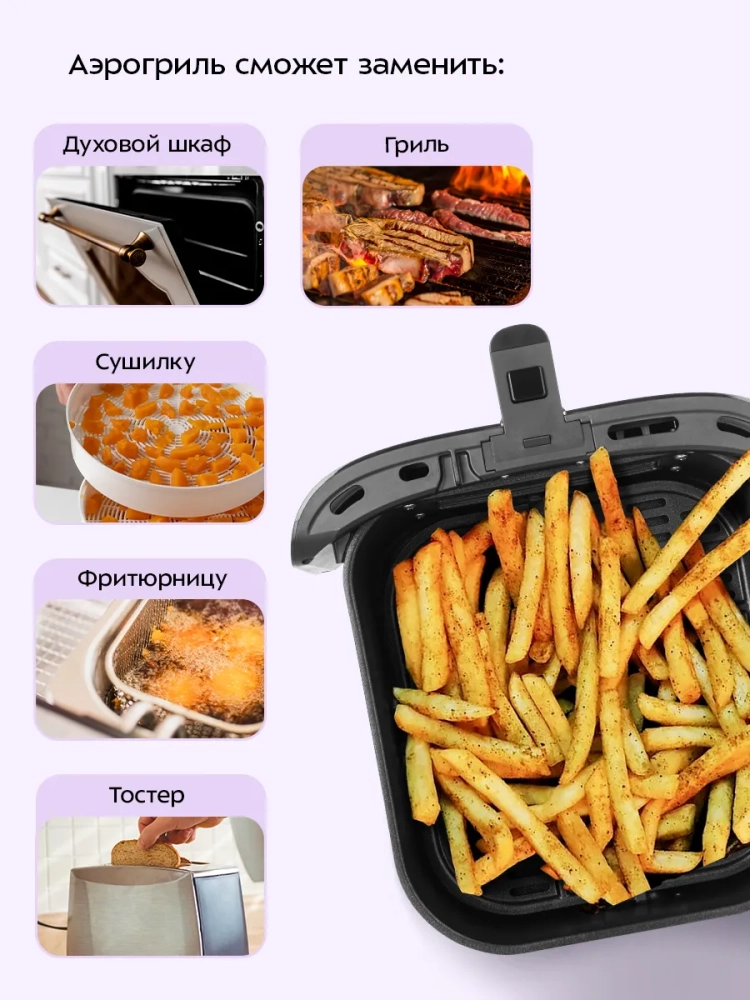 Аэрогриль Kitfort — это надежный помощник на вашей кухне, который сочетает в себе инновационные технологии и стильный дизайн. С его помощью вы сможете готовить разнообразные блюда, от хрустящих закусок до сочных основных блюд, с минимальными усилиями. Выбирая электрический аэрогриль Kitfort, вы получаете качественный продукт, который станет незаменимым элементом вашей кухни.