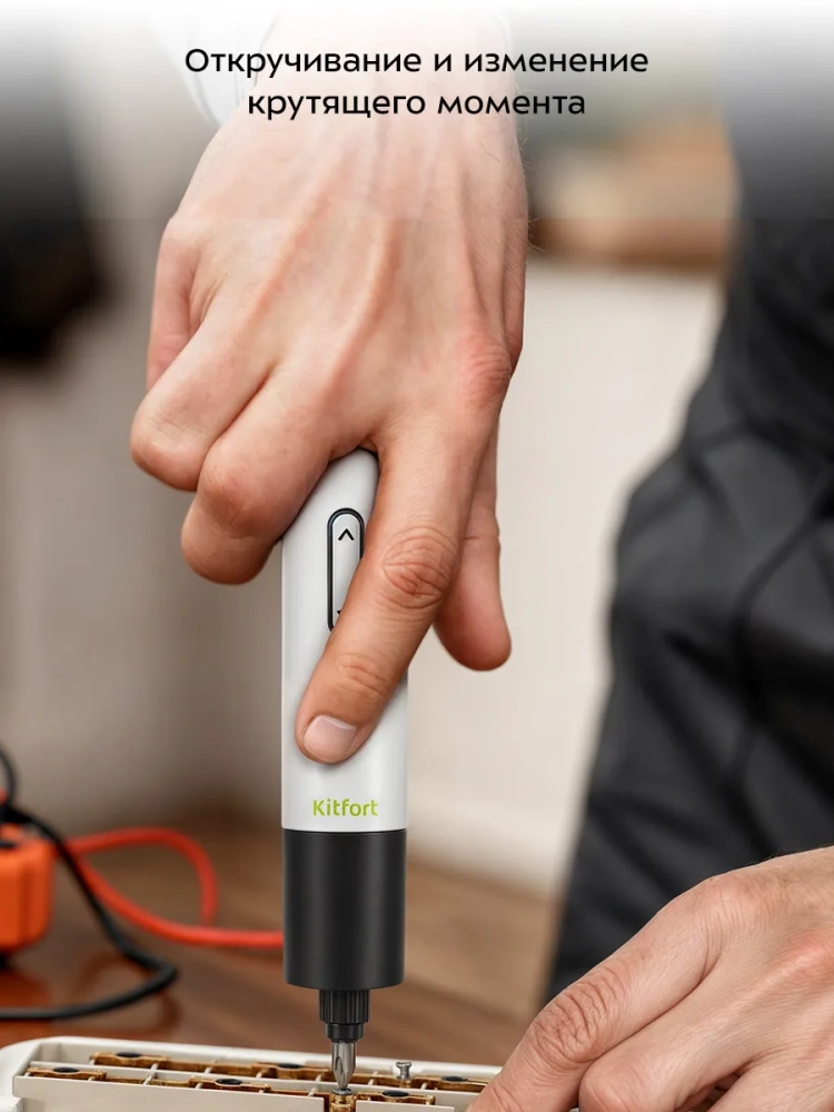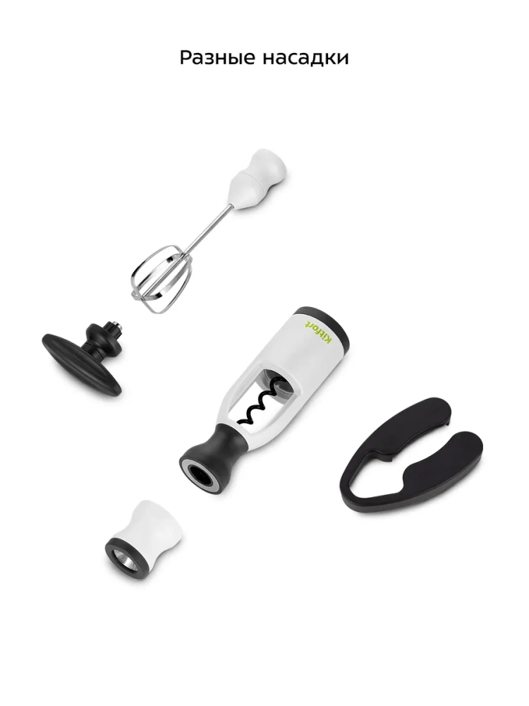 Аккумуляторная отвертка «6 в 1» Kitfort КТ-6415 не только поможет вам легко и быстро провести мелкие ремонтные работы, собрать мебель или бытовую технику, но и заменит сразу несколько инструментов на вашей кухне — с помощью дополнительных насадок поможет откупорить бутылку (вы можете использовать штопор с автоматическим вращением или с ручкой штопора без использования отвертки), снять фольгу с бутылки, взбить яйца. Также в комплекте есть насадка «Фонарик».