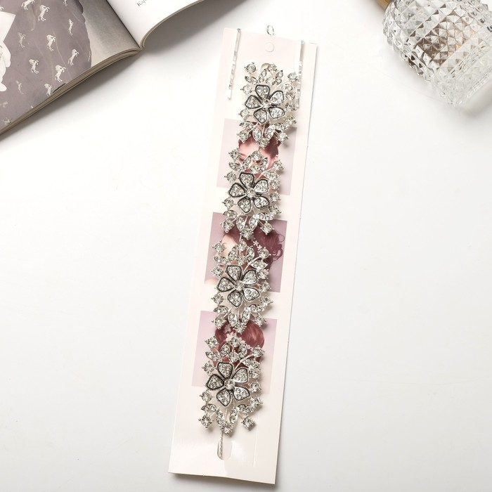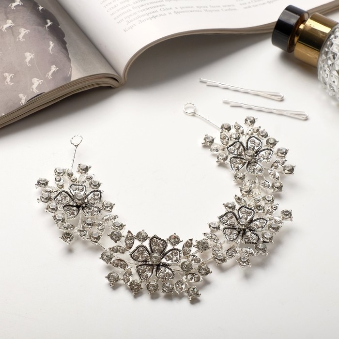 Аксессуар для волос "Зара" цветы, 23х3,5 см, серебро