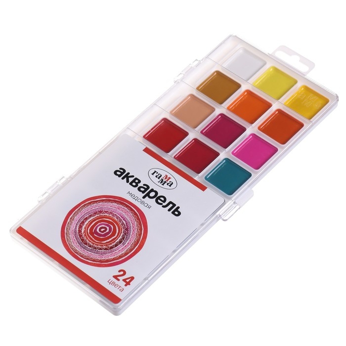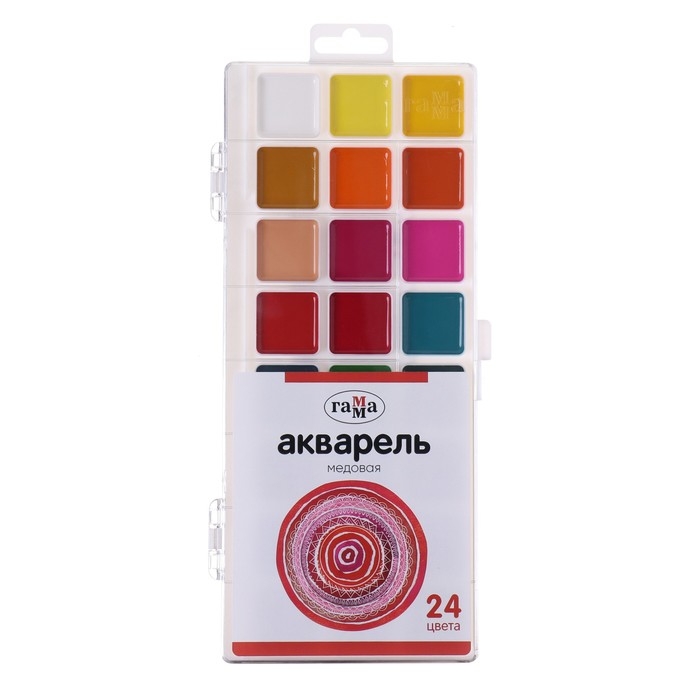 Акварель 24 цвета Гамма "Орнамент", медовая, без кисти, пластиковая упаковка, европодвес