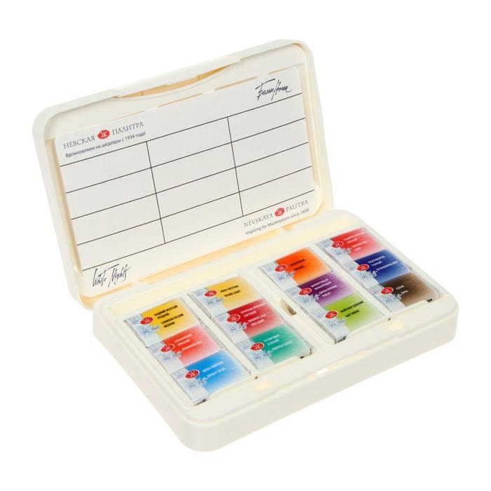 Акварель художественная в кюветах, 12 цветов х 2.5 мл, ЗХК "Белые ночи", "Ботаника", пластиковая палитра, 19421874