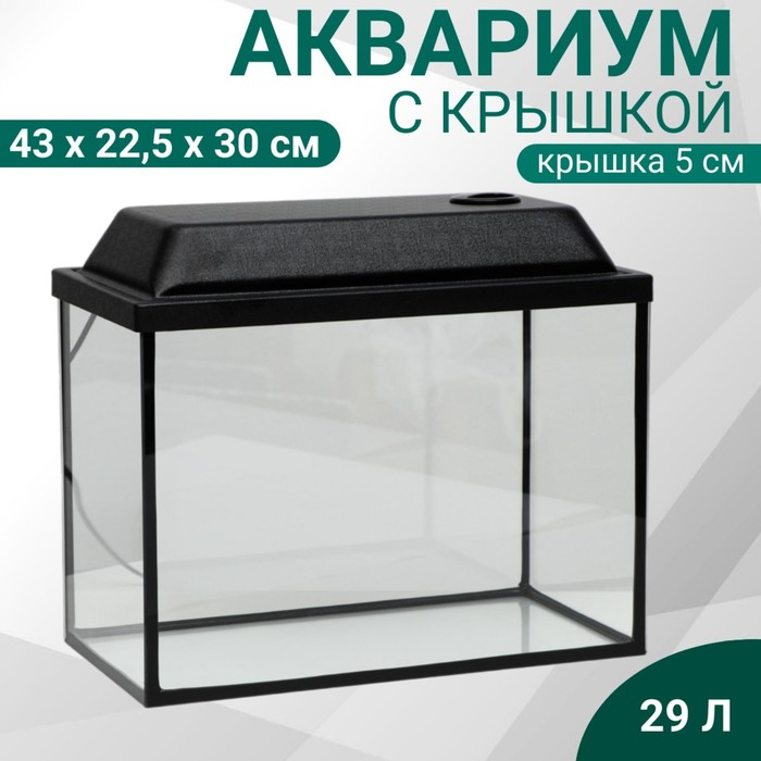 Аквариум Прямоугольный "Атолл" с крышкой, 29 литров, 43 х 22,5 х 30/35 см, чёрный