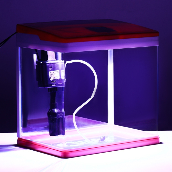 Аквариум 18 литров красного цвета, в комплекте: LED-лампа 7 режимов, фильтр.