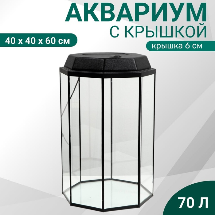 Аквариум "Восьмигранный" с крышкой, 70 литров, 40 х 40 х 60/66 см, чёрный