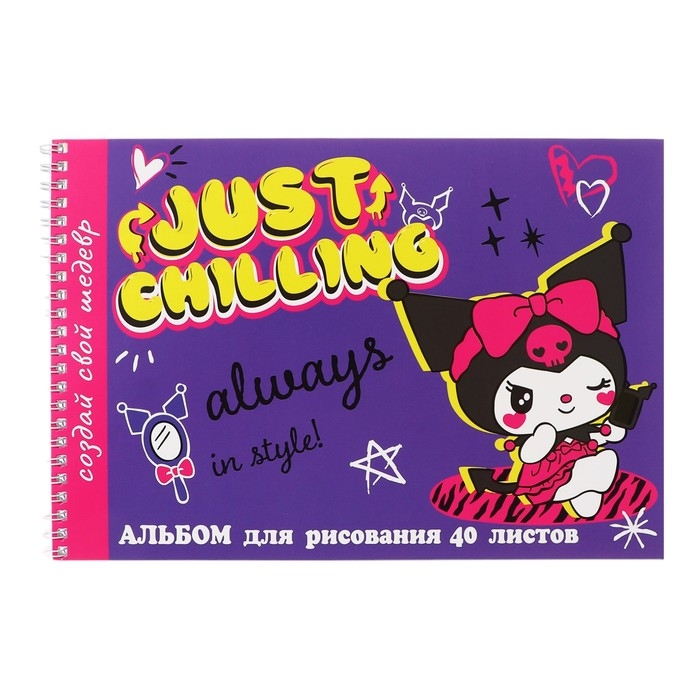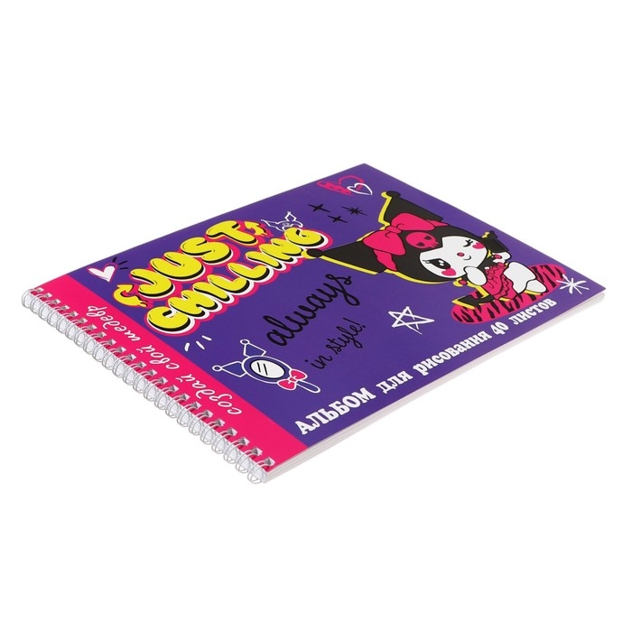 Альбом для рисования А4, 40 листов на гребне Kuromi-2, обложка мелованный картон, внутренний блок офсет 100 г/м²