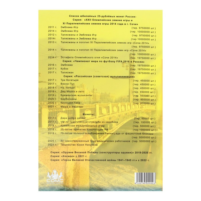 Альбом-планшет блистерный "Юбилейные 25-ти рублёвые монеты России", на 40 ячеек