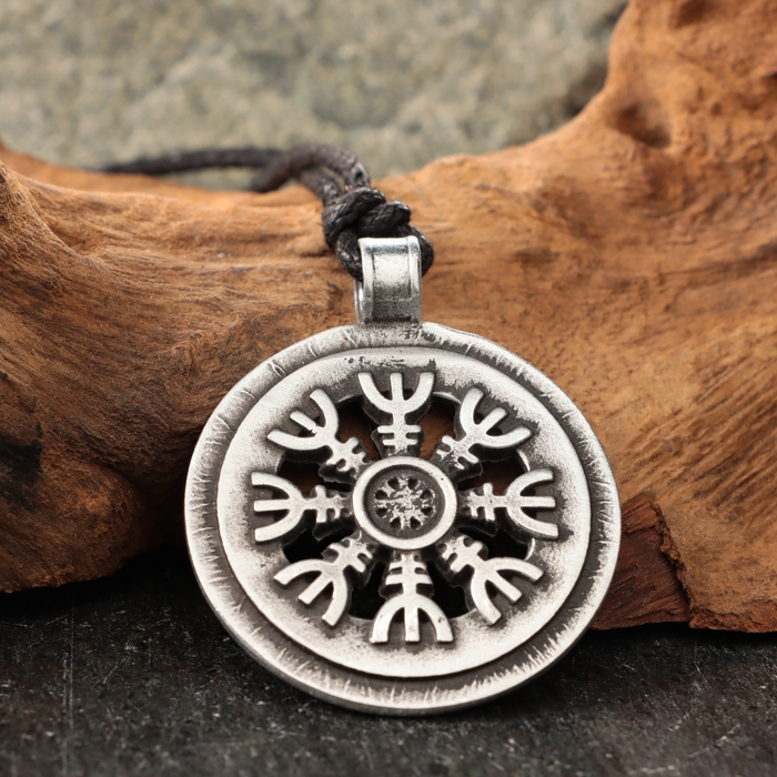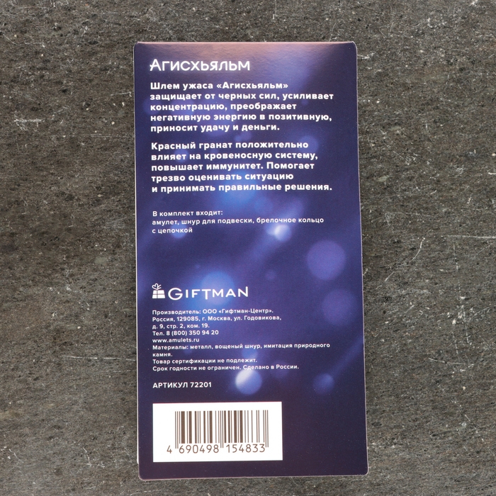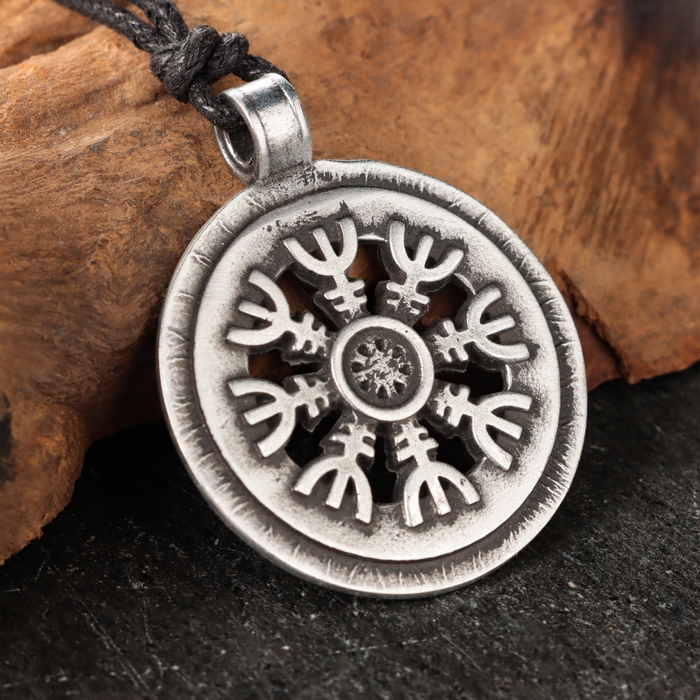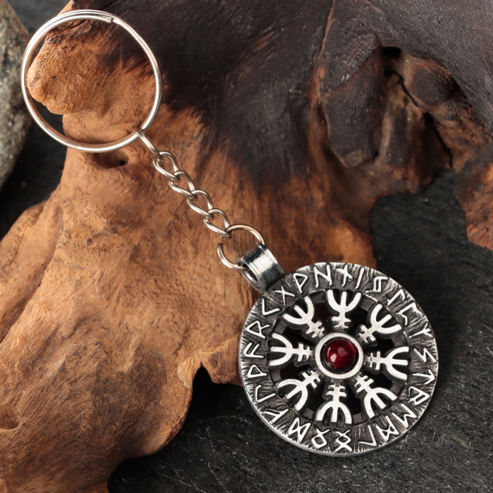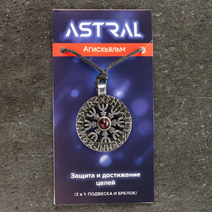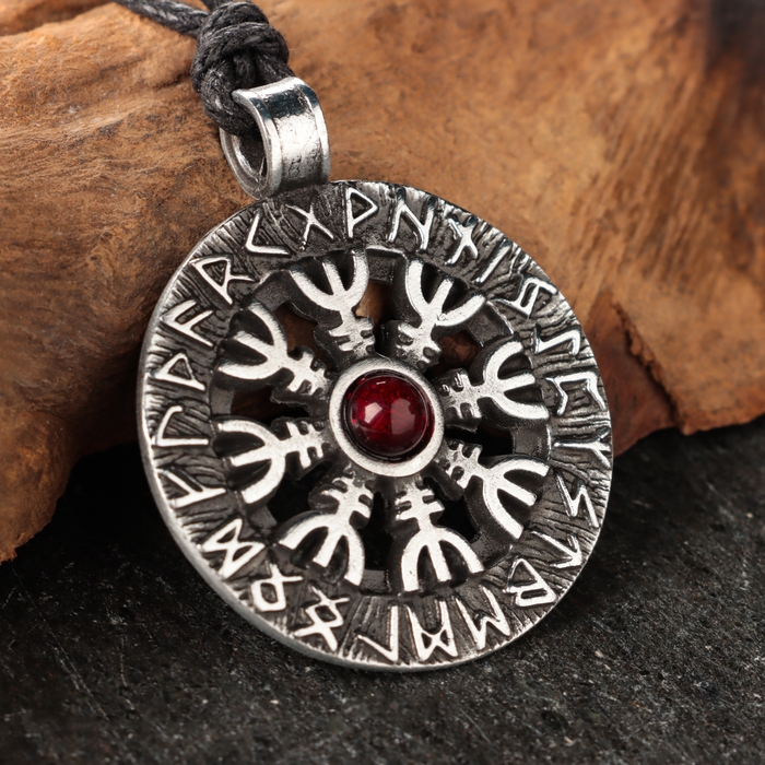 Амулет "Агисхьяльм" с камнем гранат, 35х42 мм, металлический