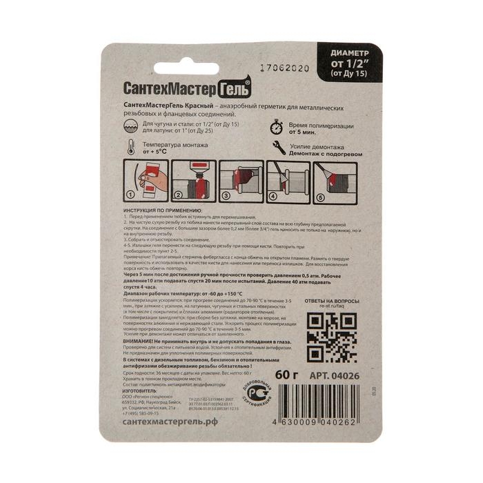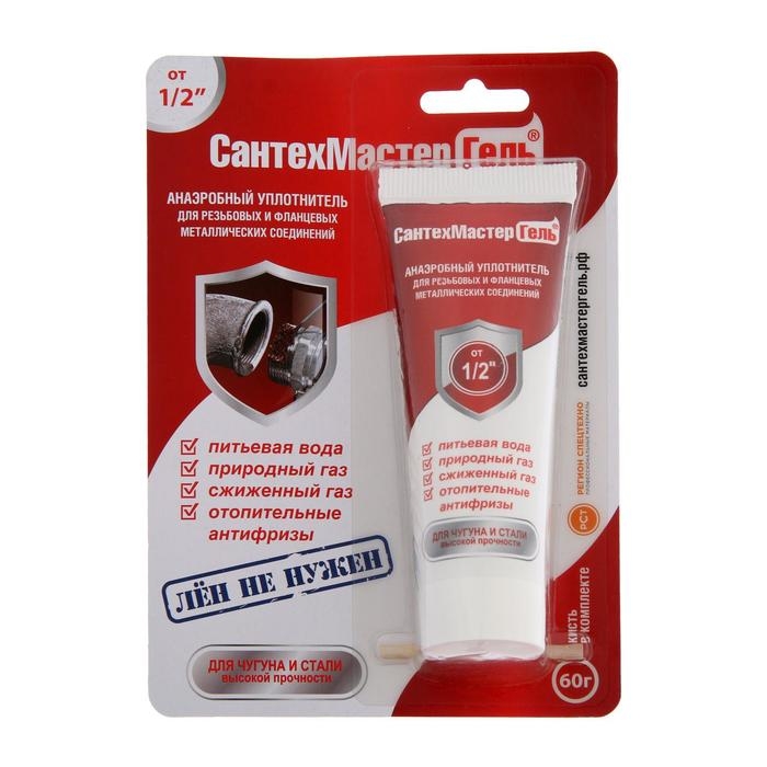 Анаэробный герметик "Сантехмастер Гель" Красный, тюбик 60 г, блистер