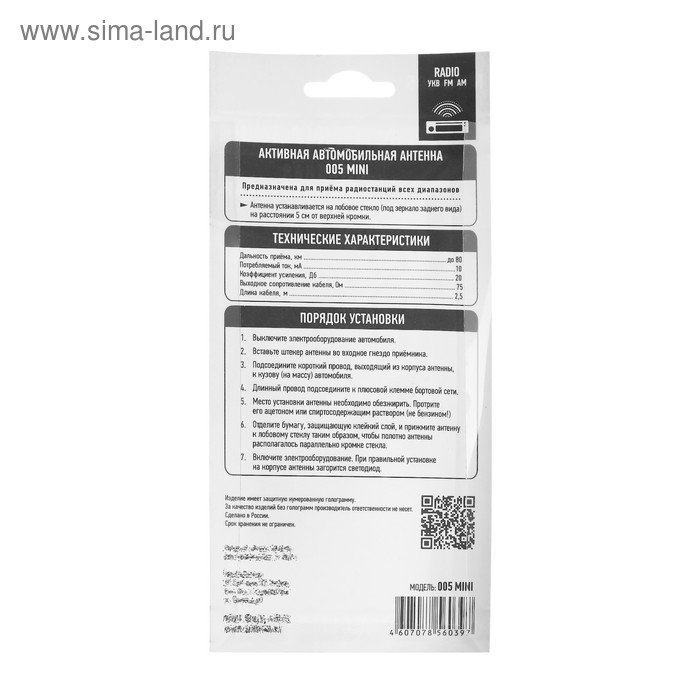 Антенна автомобильная "Триада-005 Mini", активная всеволновая, радиус до 80 км