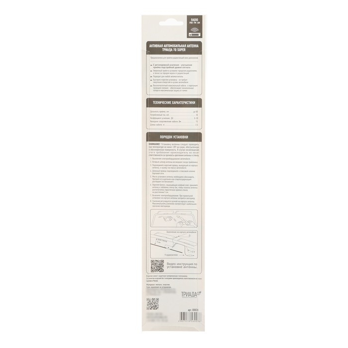Антенна автомобильная "Триада-20 Super", активная, всеволновая, регулировка усиления
