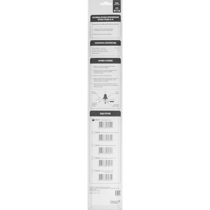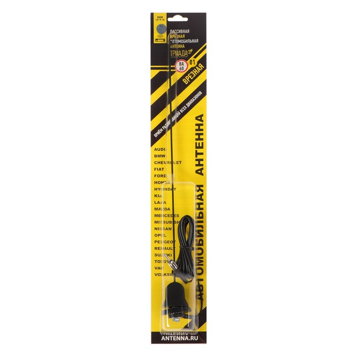 Антенна автомобильная "Триада" ВА 60-01, врезная, колокольчик, пруток прямой, 40 см