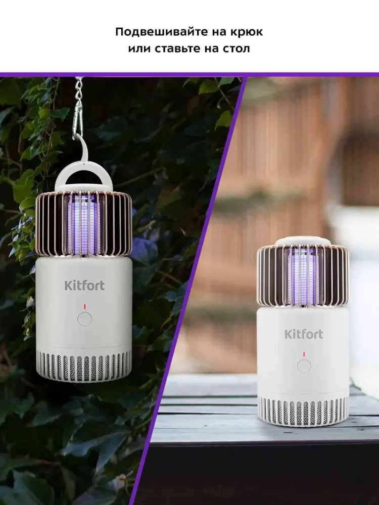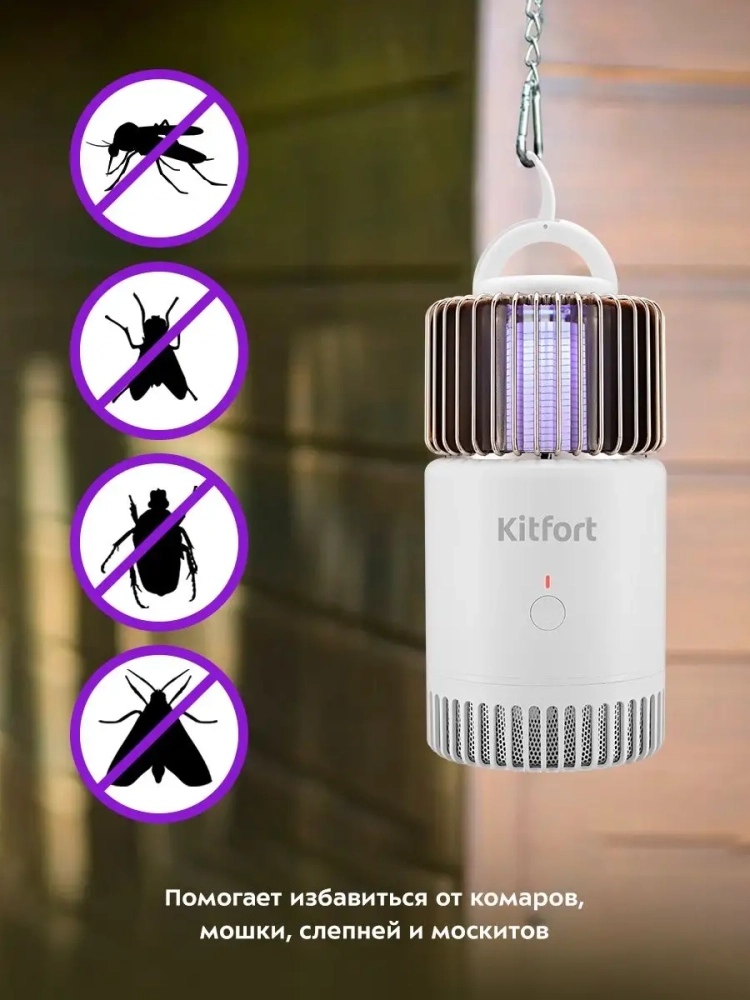 Антимоскитная лампа Kitfort KT-4020 поможет избавиться от назойливых насекомых. Насекомые летят на свет, который излучает светодиодная лампа. Вокруг ламы расположена металлическая решетка, прикасаясь к которой, насекомые мгновенно прекращают свою жизнедеятельность от удара электрическим током.