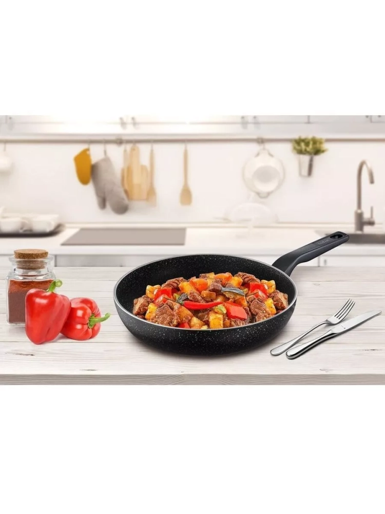Продвинутое антипригарное покрытие на наружной и внутренней поверхности облегчает не только приготовление блюд, но и позволяет с легкостью очищать сковороду, не отнимая бесценные минуты. Газовая, электрическая, керамическая или индукционная: готовьте с уверенностью на любой плите.