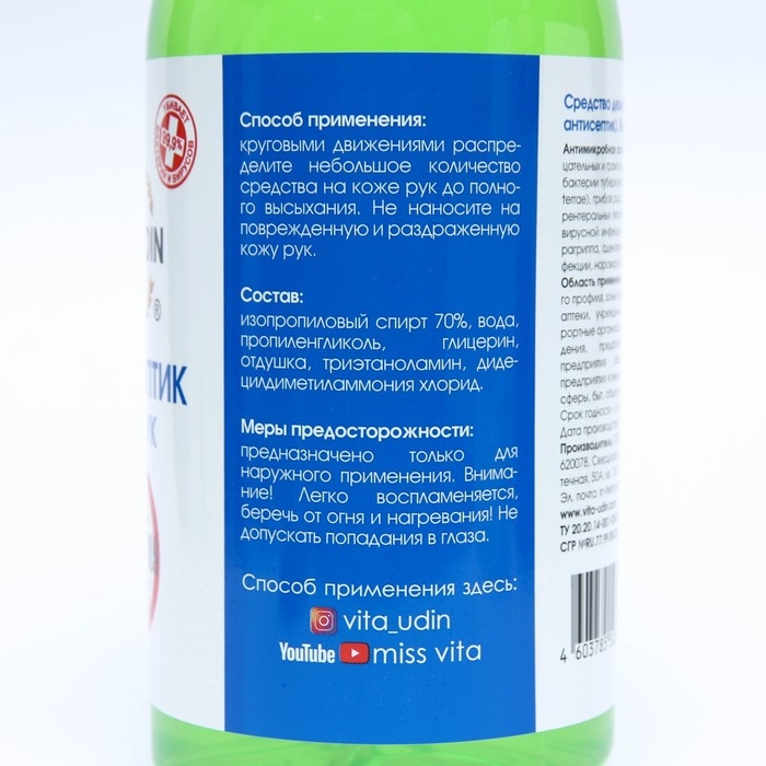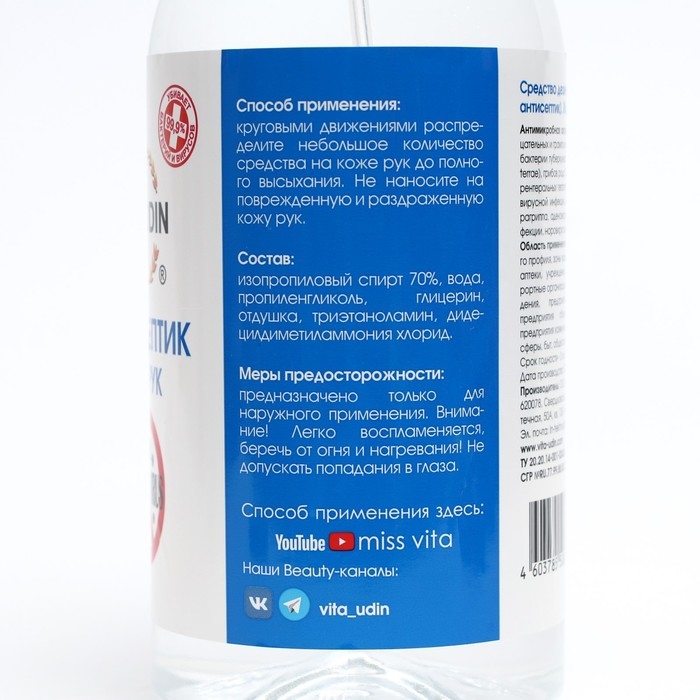 Антисептик VITA UDIN, для рук, спрей, цвет - микс, 1 л