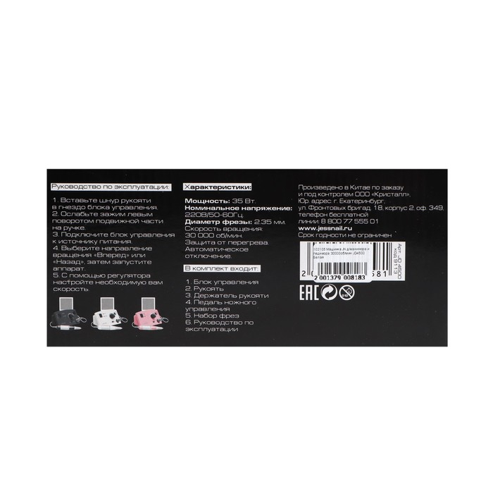 Аппарат для маникюра и педикюра JessNail JD4500 BL, 30 000 об/мин, 35 Вт, белый