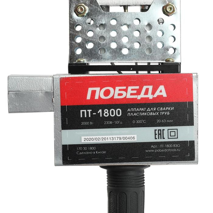 Аппарат для сварки пластиковых труб "ПОБЕДА" ПТ-1800, 1800 Вт, 20/25/32/40/50/63 мм, кейс