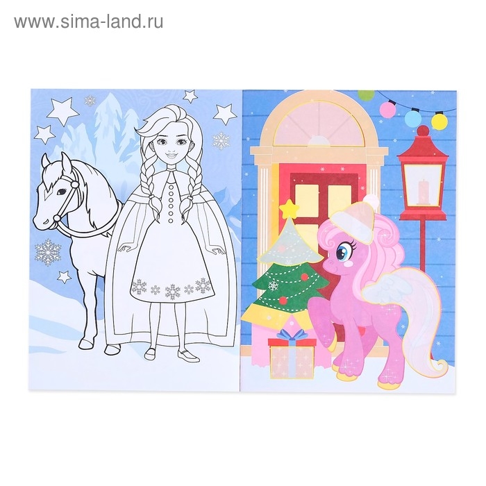 Аппликации с раскрасками новогодние «Для маленьких принцесс», 20 стр., формат А4