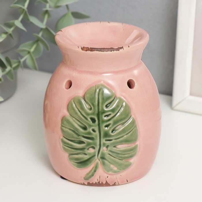 Аромалампа керамика "Зелёный пальмовый лист" 10,5х8х8 см
