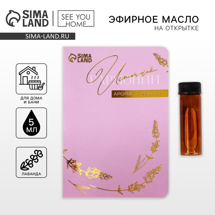 Аромамасло на открытке, аромат лаванда, для бани и дома, 5 мл.