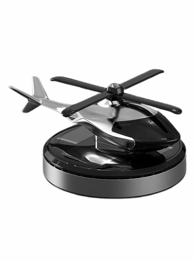 Стильный ароматизатор воздуха в салон автомобиля в виде вертолёта. Автомобильный ароматизатор вертолёт имеет солнечные батарейки, благодаря которым крутится винт. Ароматизатор в машине имеет в своём комплекте ароматическое масло и пипетку. Освежитель воздуха подойдет не только в машину, но и также для дома или офиса. Масло наносится на деревянный брусок, который находится внутри под задней крышкой. Автомобильный ароматизатор подходит для использования любого ароматического масла, запах которого Вам нравится. Ароматизатор будет стильным аксессуаром для Вашей машины. А также освежитель-вертолет отлично подойдёт в качестве подарка как мужчине, так и женщине! Ароматический освежитель в машину можно подарить на день рождения, 8е марта, 23 февраля, Новый год другу или подруге, парню, мужу, брату, жене, сестре. ИНСТРУКЦИЯ: Перед начало использования достаньте ароматизатор, масло и пипетку. Откройте нижнюю крышку, достаньте деревянное кольцо и при помощи пипетки хорошо пропитайте желоб ароматическим масло. Закройте крышку, а затем снимите защитную пленку с нижнего основания и прикрепите вертолёт на панели автомобиля. По мере испарения масла просто добавьте 1-10 капель масла для возобновления запаха, рекомендуемый период - каждые 10 дней. Флакон с эфирным маслом необходимо хранить в прохладном, темном месте.