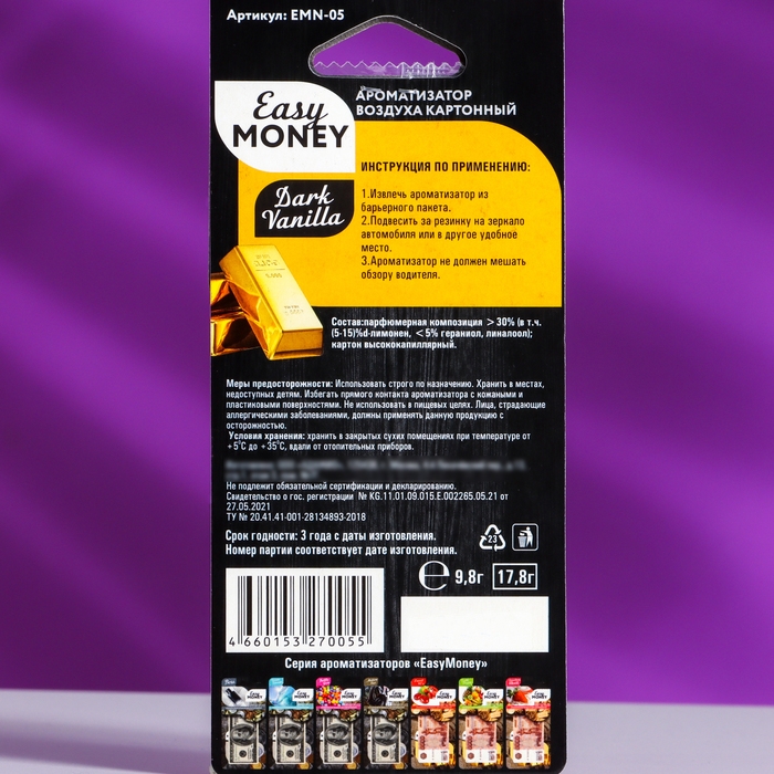 Ароматизатор подвесной 5000 рублей, Dark Vanilla, ваниль, EMN-05