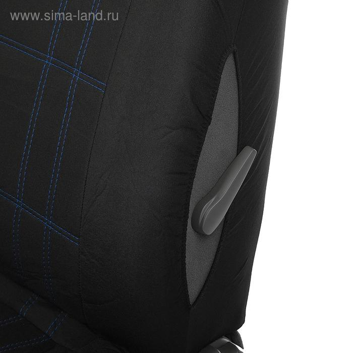 Авточехлы универсальные 9 предметов, черные - синяя нить, М5, Classic series
