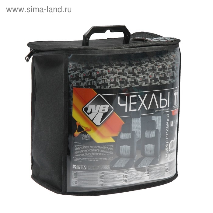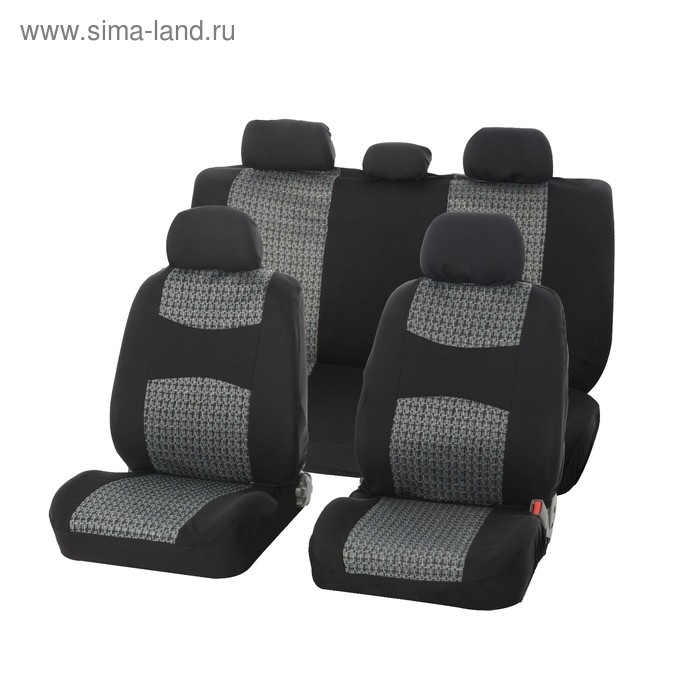 Авточехлы универсальные Nova Bright, черные с серыми вставками, жаккард, 11 предметов
