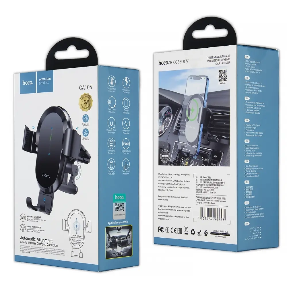 Автодержатель CA105 с беспроводной зарядкой HOCO черный