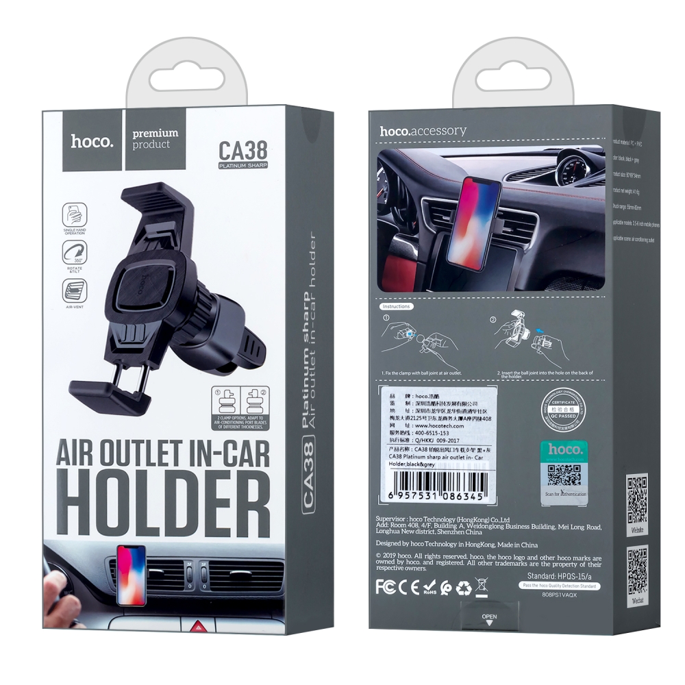 Автодержатель CA38 в решетку HOCO черный с серым