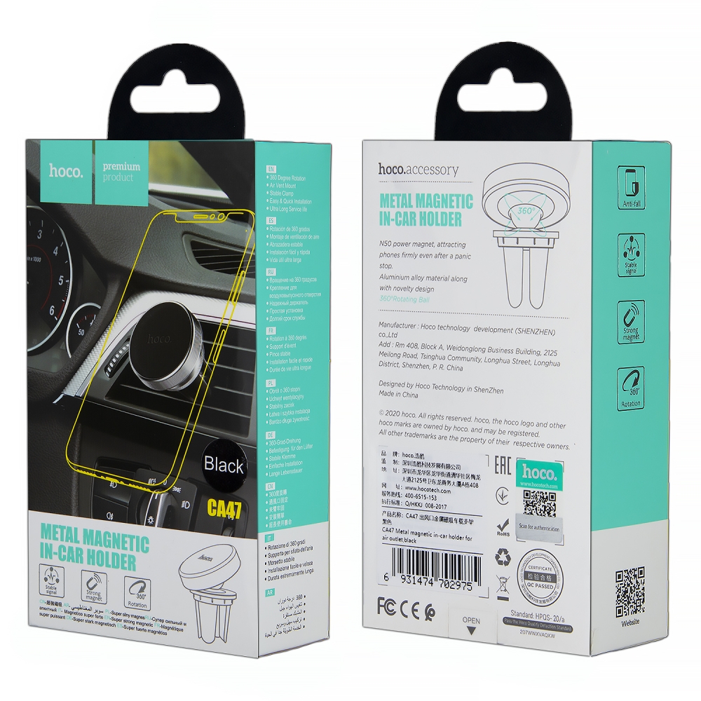 Автодержатель CA47 магнитный HOCO черный