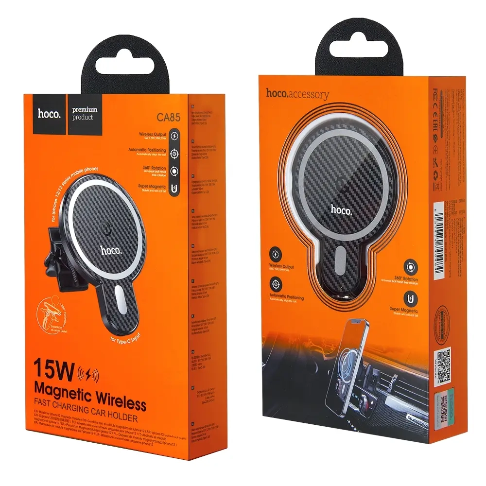 Автодержатель CA85 с беспроводной зарядкой HOCO черный