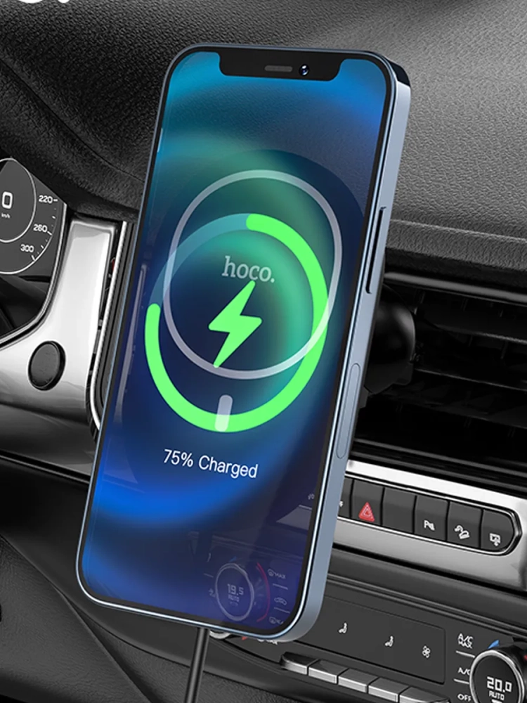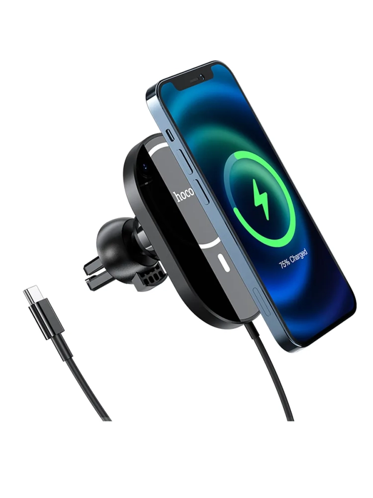 Автодержатель **Hoco CA90** с беспроводной зарядкой Magsafe – это превосходное решение для владельцев iPhone, которое сочетает в себе стильный дизайн, надежную фиксацию устройства и удобство использования. Этот аксессуар был разработан специально для моделей iPhone 13, 12 и 14, обеспечивая максимальную совместимость и эффективность. Благодаря встроенной поддержке технологии Magsafe от Apple, автодержатель гарантирует стабильное удержание телефона даже на неровных дорогах.