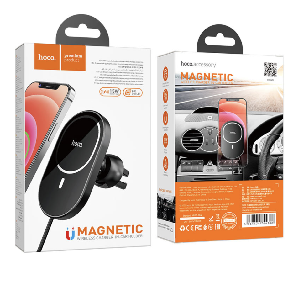 Автодержатель CA90 с беспроводной зарядкой HOCO черный