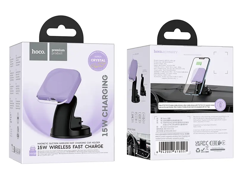 * Автодержатель HW18 с беспроводной зарядкой HOCO сиреневый