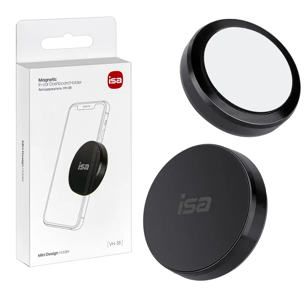Автодержатель VH-38 магнитный ISA — это компактное и универсальное решение для надежной фиксации смартфона или другого мобильного устройства в автомобиле. Он оснащён сверхмощным неодимовым магнитом, который гарантирует прочное удержание гаджета даже при резких манёврах или неровностях на дороге.