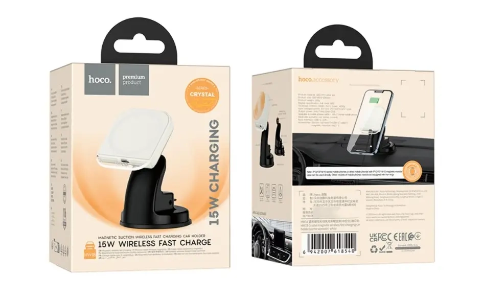 АвтодержательHW18 с беспроводной зарядкой HOCO белый