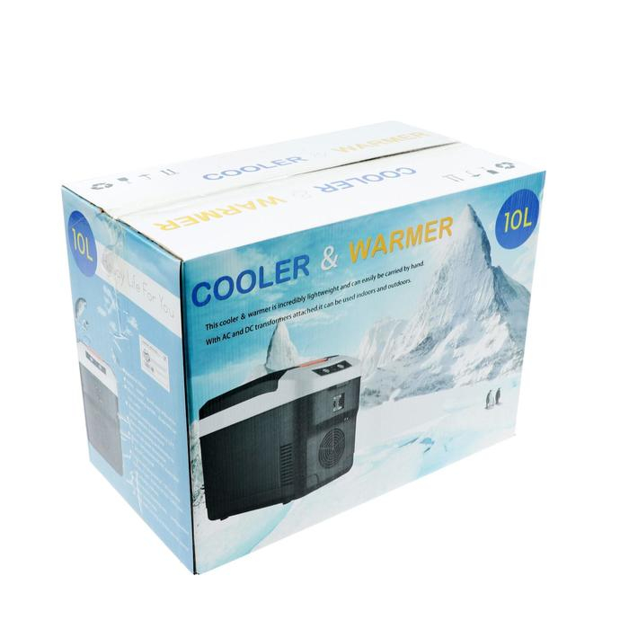 Автомобильный портативный холодильник имеет внутренний объем 10 литров, питание от автомобильной бортовой сети 12 или 24 В, так же от сети 220в.