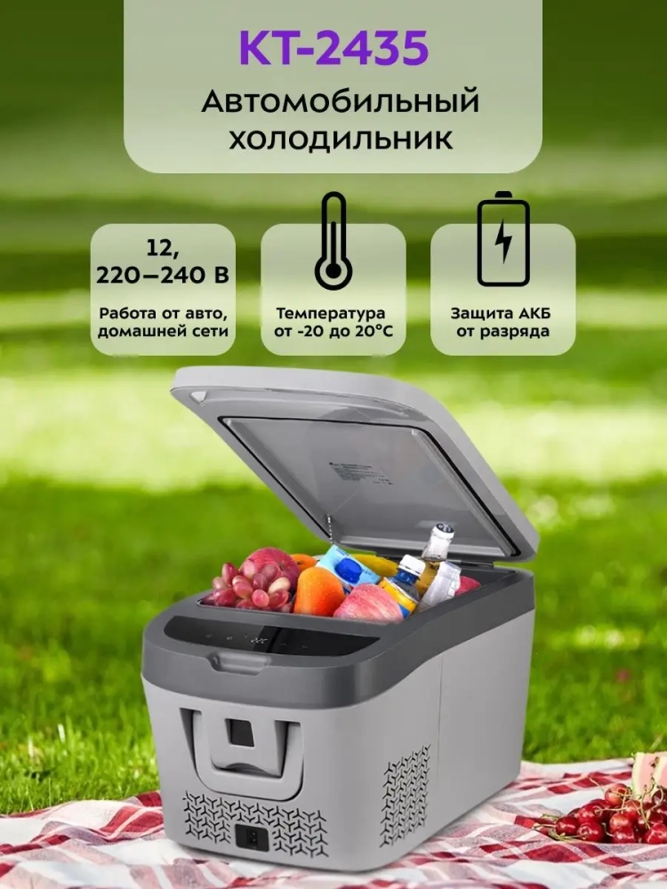 Портативный автомобильный холодильник Kitfort KT-2435 идеально подойдет для тех, кто любит путешествовать и проводить время на природе. KT-2435 можно использовать в автомобиле во время длительных путешествий, в загородном доме, в офисе, на природе и в квартире.