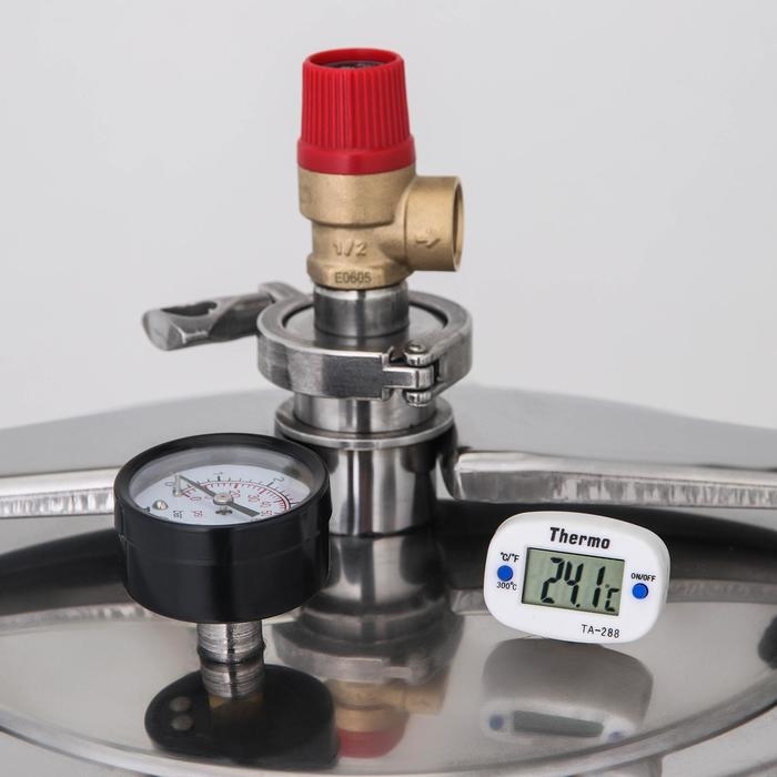Автоклав предназначен для тепловой стерилизации пищевых продуктов в стеклянной или жестяной таре в домашних условиях. Особая технология крепления обеспечивает безопасную и точную работу: овальная крышка слегка фиксируется двумя вентилями снаружи, а далее — поддерживается давлением изнутри. Автоклав оснащён клапаном аварийного сброса давления, что позволяет избежать превышения допустимых показателей.