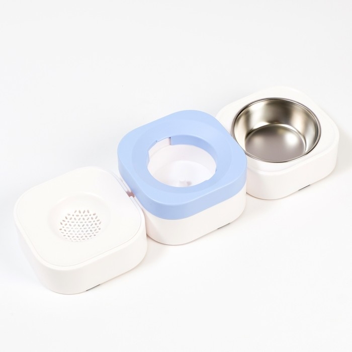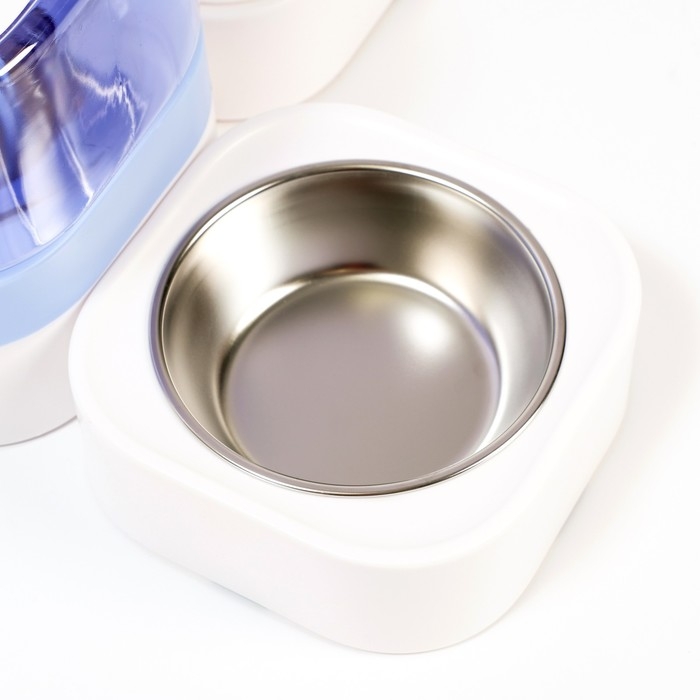 Миска двойная с автопоилкой (съёмная бутылка) 40,5 х 23 х 25 см, голубая