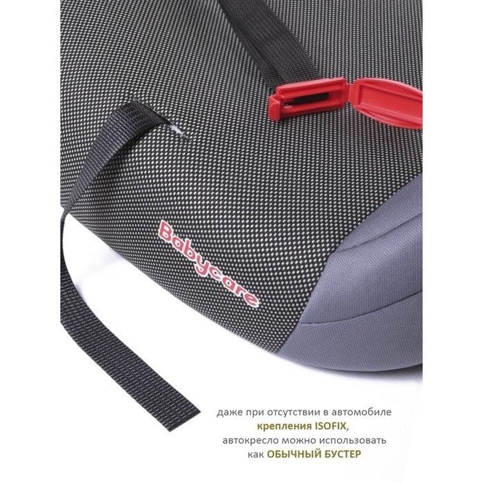 Окутывающая форма автокресла обеспечивает дополнительную боковую и заднюю защиту. Бустер автомобильный надежно крепится в Вашем автомобиле к креплению Изофикс (Isofix). Если в Вашем автомобиле нет крепления ISOFIX, автокресло можно использовать как обычный бустер.