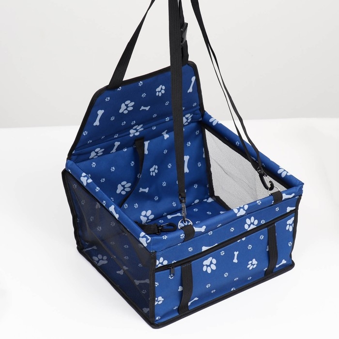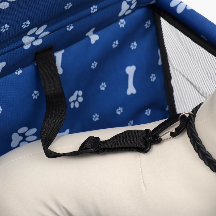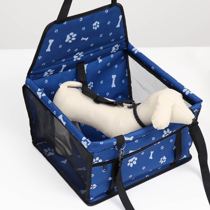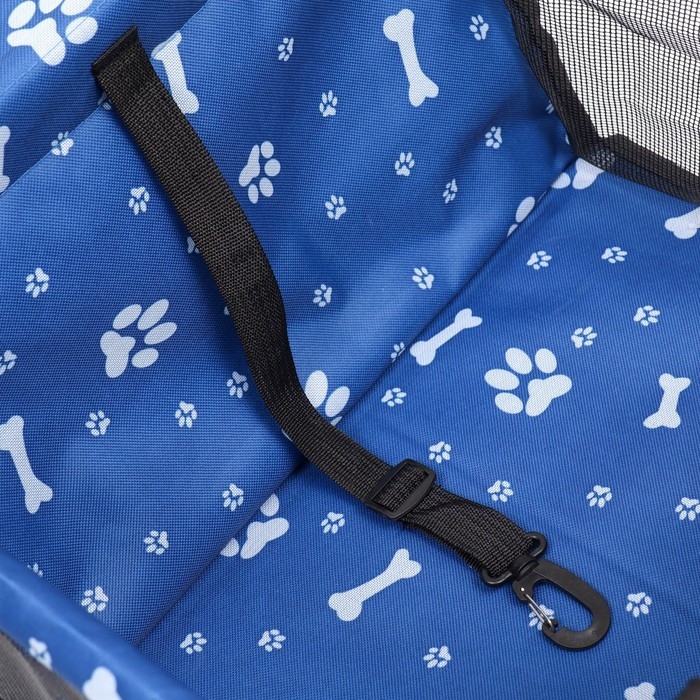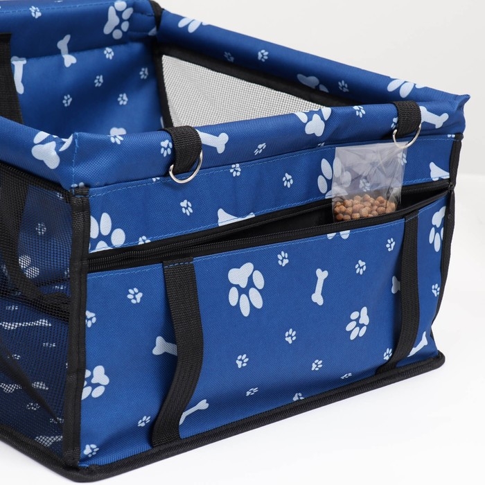 Автокресло для животных 40*30*25 см, синее с белыми лапками и косточками