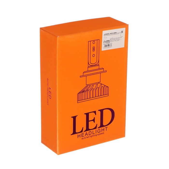 Автолампа светодиодная Н7, 72 Вт, 5000 Лм, 6500 К, IP65, набор 2 шт