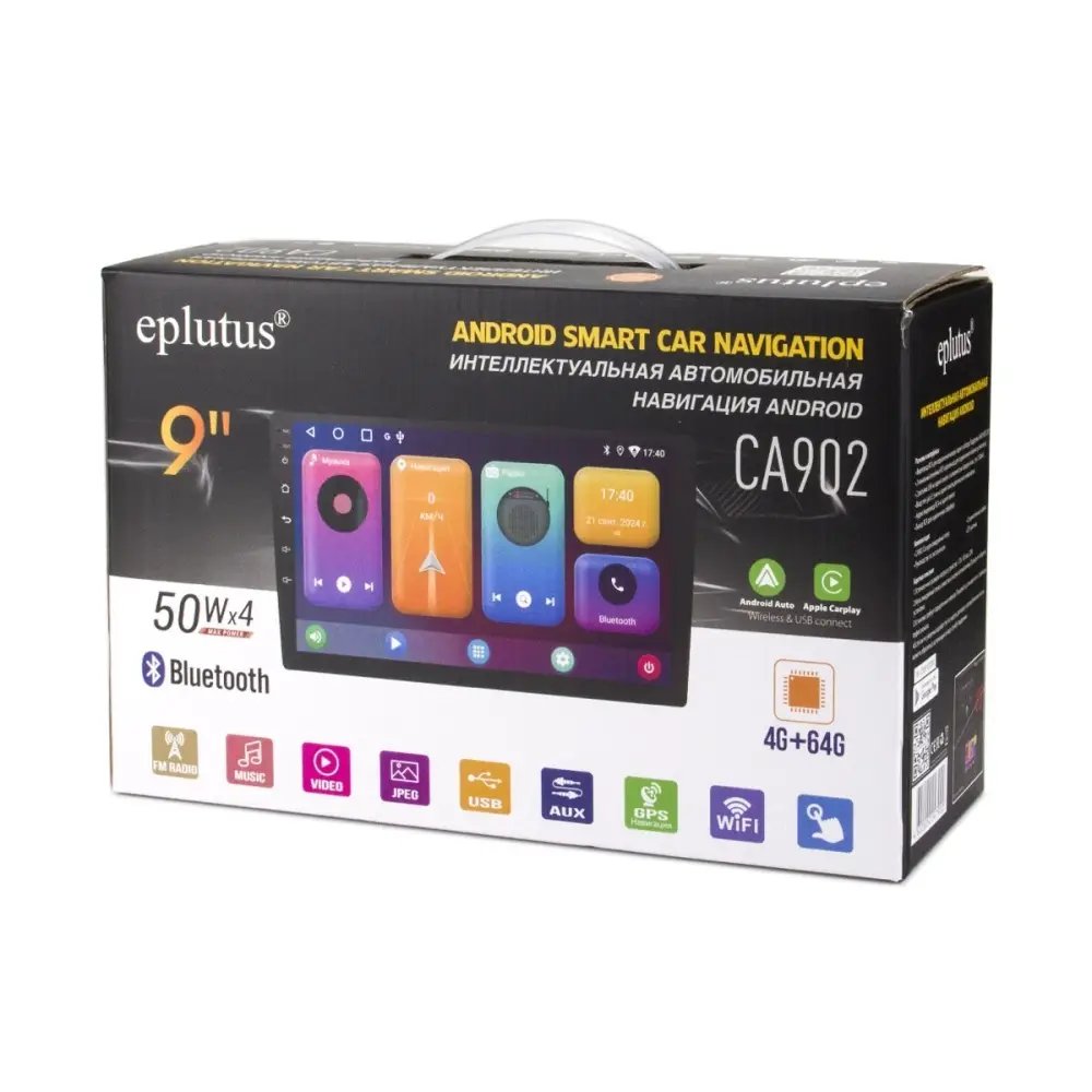 Автомагнитола Eplutus CA902 является отличным выбором для тех, кто ищет устройство с большим сенсорным жидкокристаллическим экраном на базе Android 12. Она имеет размер 2 Din и 9-дюймовый экран с разрешением 1280x720.