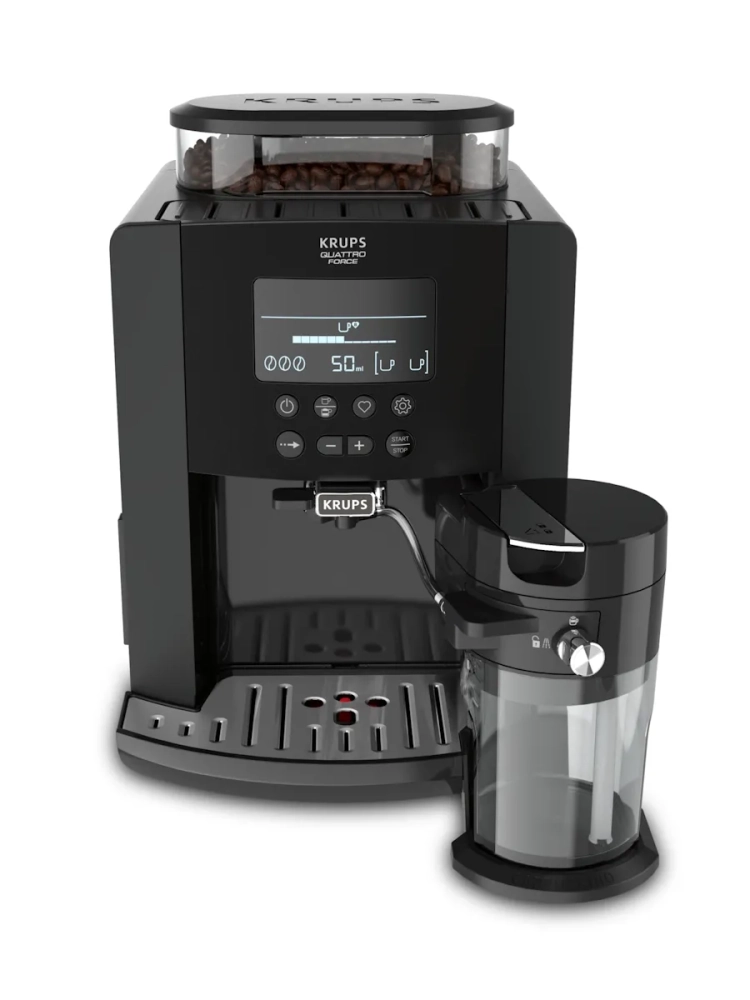 Автоматическая кофемашина KRUPS Arabica Latte позволит вам наслаждаться потрясающе вкусными и ароматными кофейными напитками у себя дома. Благодаря большому и удобному LCD-дисплею вы легко приготовите эспрессо или капучино одним нажатием кнопки. Три предустановленные программы для молочных напитков предназначены для создания воздушной и кремовой молочной пены по вашему вкусу, а интеллектуальная система сохранит до четырех ваших любимых рецептов. Кофемашину просто чистить – резервуар для воды легко снимается, а капучинатор быстро разбирается на три части. В дополнение ко всему инновационная технология KRUPS Quattro Force поможет добиться потрясающего вкуса и аромата в каждой чашке кофе.