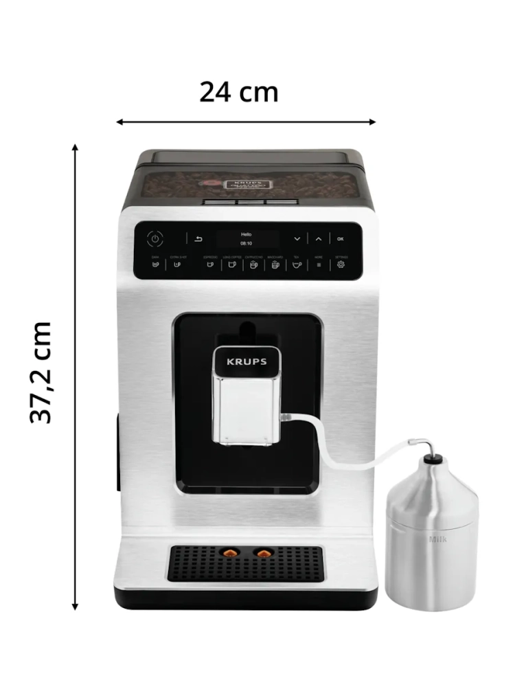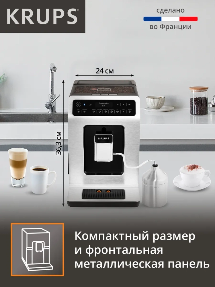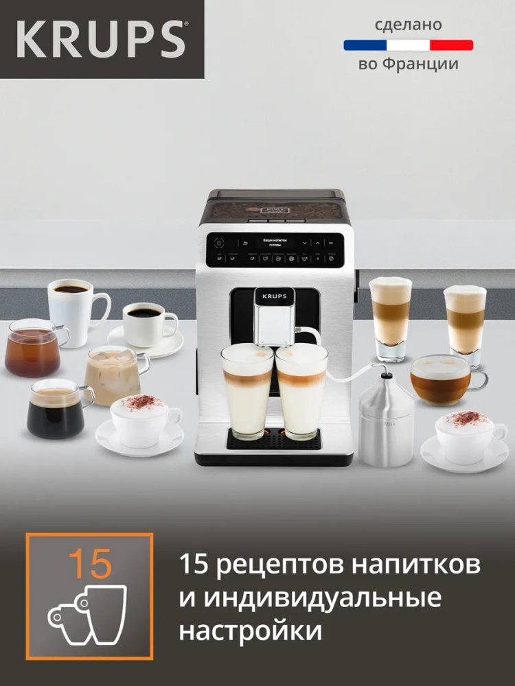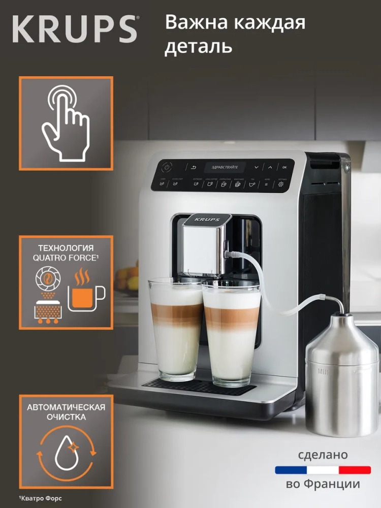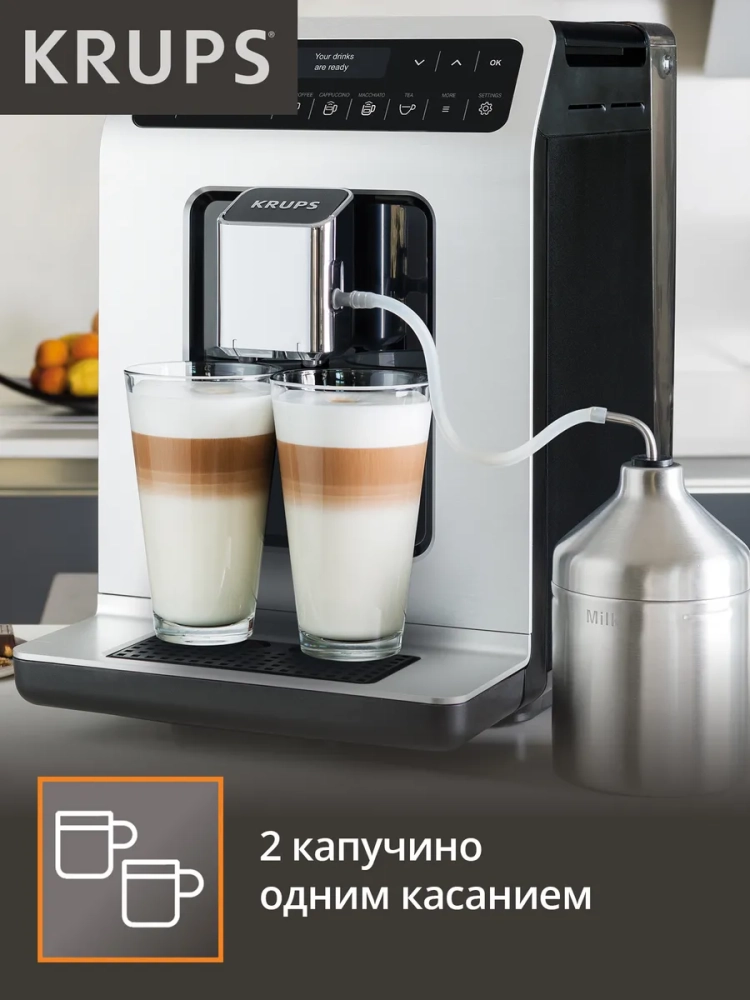 Автоматическая кофемашина KRUPS Evidence создает неповторимый кофе благодаря высокой тщательности обработки зерен и точности процесса приготовления. 15 различных программ позволят вам в одно касание приготовить свои любимые кофейные напитки от ароматного эспрессо до идеально сбалансированного капучино. Специальная функция дополнительной порции эспрессо позволит добавить больше вкуса и энергии в любой напиток, а уникальная с помощью регулировки крепости вы получите более насыщенный кофе. Кофемашина оснащена системой KRUPS Quattro Force, которая создает неповторимый вкусный кофе с густой кремообразной пеной благодаря качественному измельчению зерен на высокой скорости. Автоматическая очистка парового сопла позволит поддерживать качество работы устройства и его долговечность. Уникальный элегантный современный дизайн будет приятно радовать вас каждое утро и украсит любую кухню.