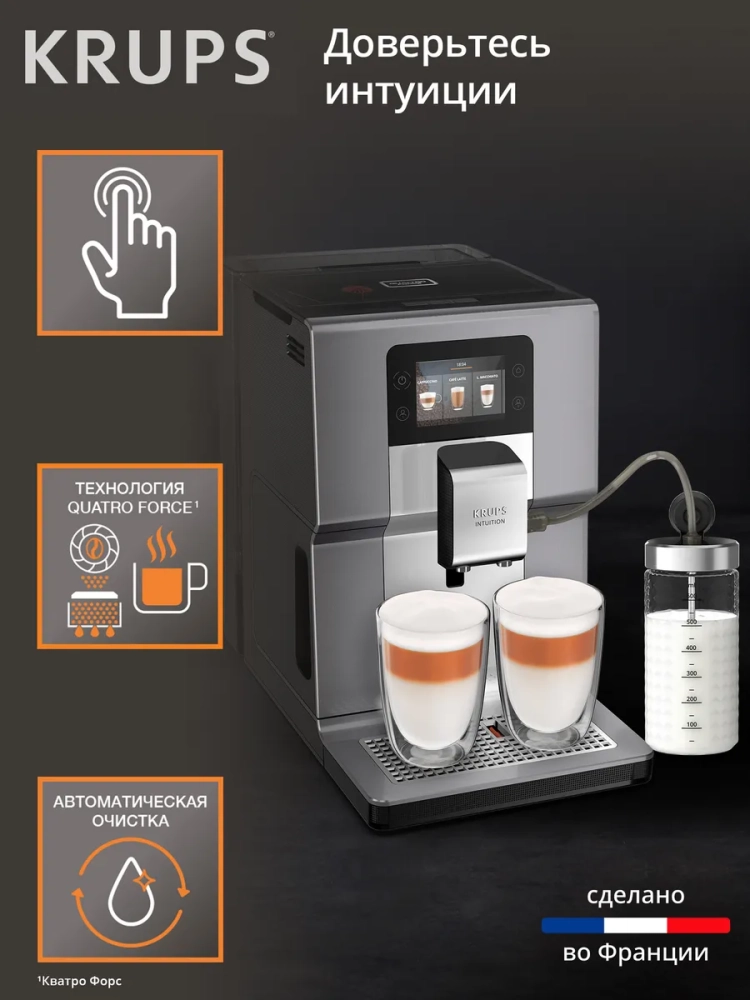 Откройте для себя удовольствие от идеально приготовленного кофе каждый день вместе с автоматической кофемашиной Intuition Preference+ от Krups!