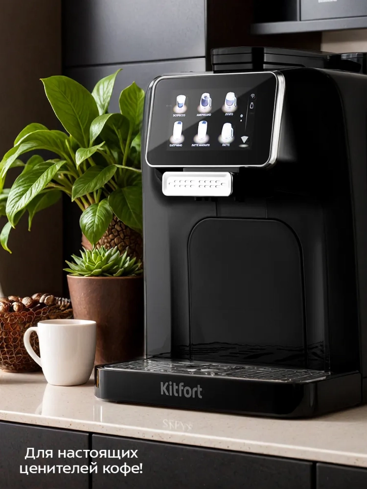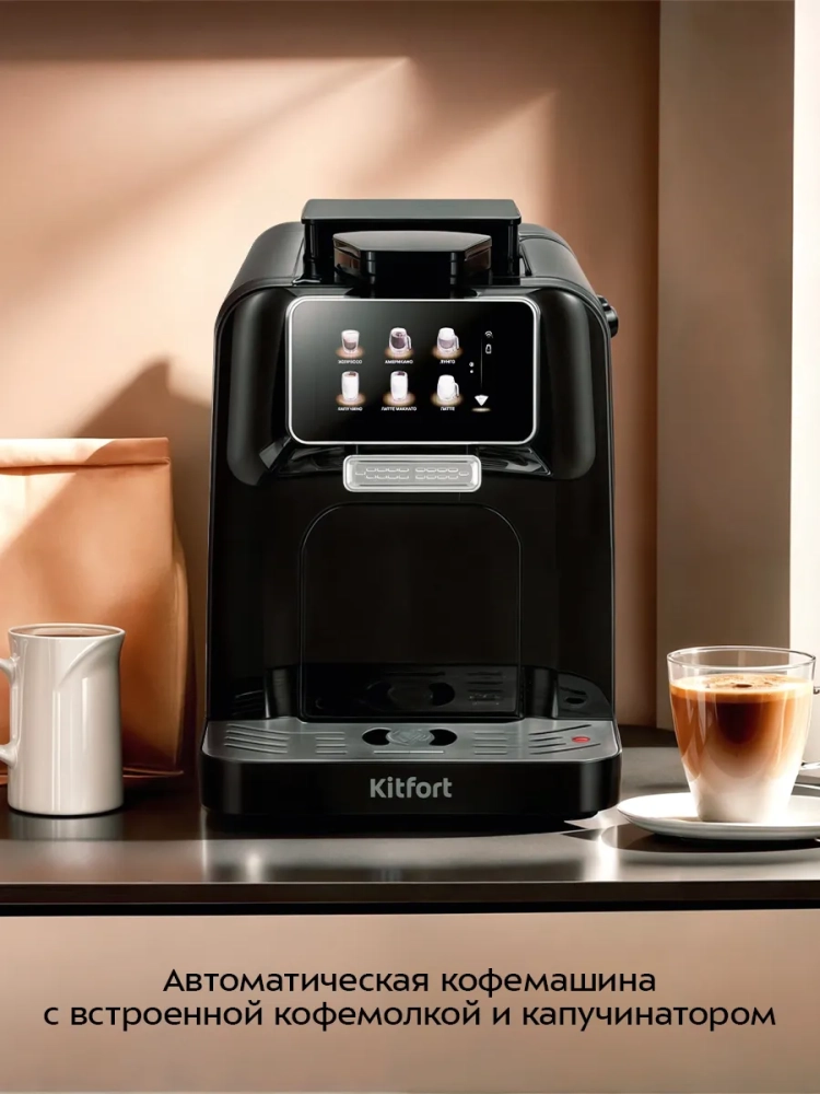 Автоматическая кофемашина Kitfort КТ-7460 — отличный выбор для гурманов, которые не хотят тратить много времени и сил, чтобы насладиться полным букетом вкуса свежезаваренного кофе. Кофемашина автоматически приготовит эспрессо, американо, лунго, капучино, латте макиато, латте, макиато и флэт уайт — достаточно всего лишь нажать на кнопку. С помощью кофемашины также можно сделать молочную пенку, горячее молоко или включить подачу горячей воды.